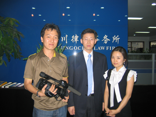 接受韩国MBC电视台在华专访(律师与韩国记者郑淑美 右、李泳昊 左)